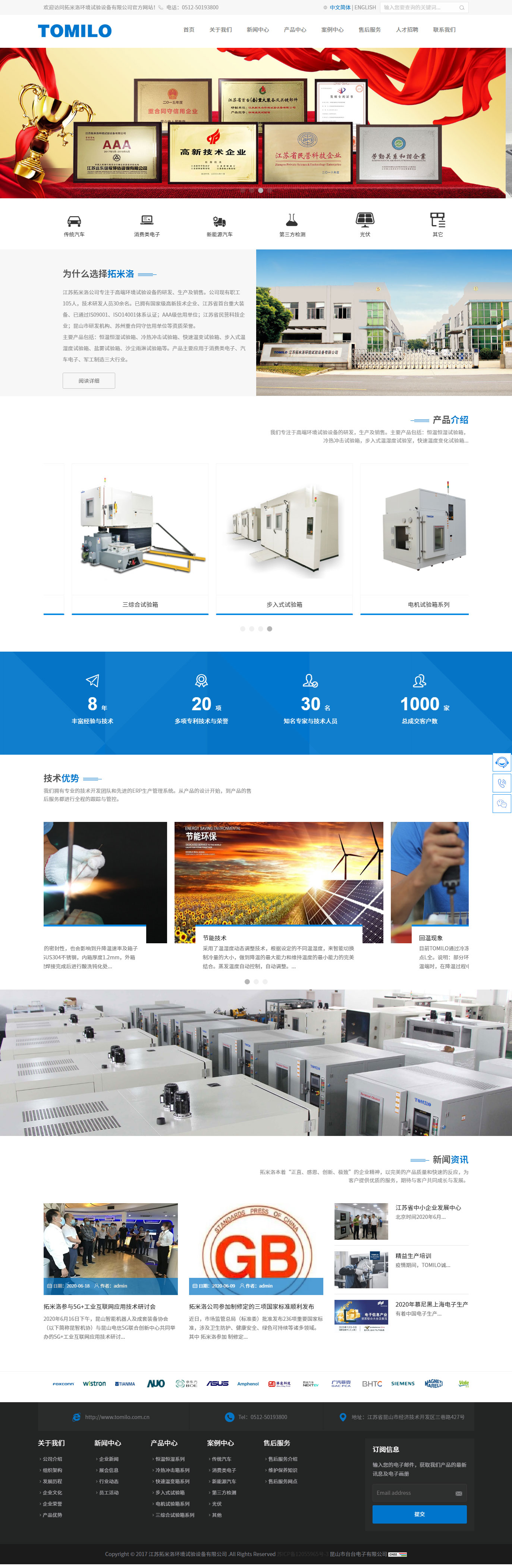 江蘇拓米洛環境試驗設備有限公司專注于高端環境試驗設備的研發、生產及銷售。公司現有職工155人,技術研發人員40余名。已擁有國家級高新技術企業、江蘇省首臺重大裝備、已通過IS09001、ISO14001體系認證;AAA級信用單位;江蘇省民營科技企業;昆山市研發機構、蘇州重合同守信用單位等資質榮譽。